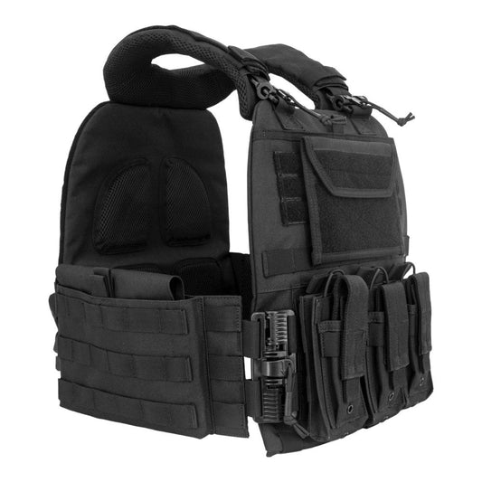 🔹 Plattenträger (Plate Carrier): Eine spezifische Art von (meist offen getragener) Schutzweste, die dafür konzipiert ist, harte ballistische Schutzplatten (Hartballistik) aufzunehmen. Sie bieten oft einen höheren Schutzlevel gegen Gewehrmunition. Viele Plattenträger haben auch MOLLE/PALS-Schlaufen zur Befestigung von Ausrüstung und sind somit auch taktische Westen. Natürlich schützt ein Plattenträger nur mit eingesetzten Schutzplatten!