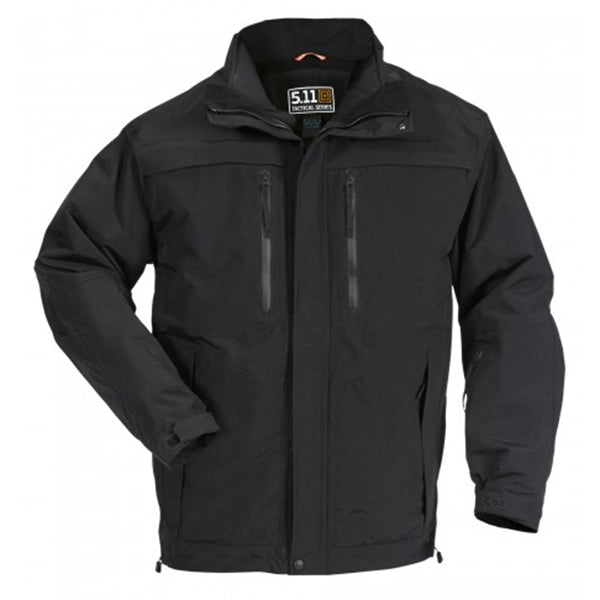 Cela permet d'accéder très rapidement à l'arme de service. Les poignets sont élastiques et réglables. Le système de ceinture de sécurité 5.11 permet le couplage avec une variété d'accessoires tels que des sacs et des supports. Ceux-ci peuvent être facilement attachés à la veste à l'aide de velcro. Des panneaux d'identification peuvent être fixés au dos et sur la poitrine gauche. Il y a deux poches verticales zippées sur la poitrine, qui sont imperméables. Il y a un clip dans la poche gauche pour que vous puissiez transporter vos clés confortablement. Les zones soumises à des contraintes plus fréquentes sont renforcées. La fabrication robuste et durable a été rendue possible par 9 à 10 points sur une longueur de 2,54 cm. Les fermetures à glissière sont très faciles à utiliser grâce aux boucles attachées, et les fermetures à glissière YKK Aquaguard sont également étanches. Il y a une capuche dans le col de la veste, qui, grâce au cordon de serrage et au masque, protège parfaitement contre tous les types de rafales de vent, de pluie et de neige.
