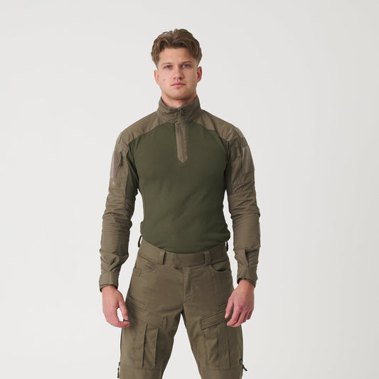 Una buona camicia da combattimento deve essere sufficientemente aderente da non scivolare e non creare fastidio sotto equipaggiamenti come giubbotti antiproiettile o portapiatti. Allo stesso tempo, non deve limitare la tua libertà di movimento, in modo da poter sempre mantenere la flessibilità nell'azione.