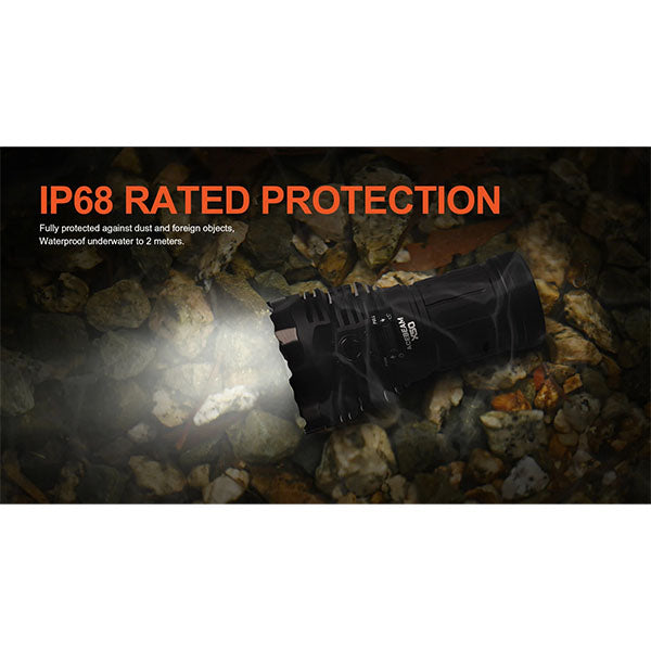 Questo faretto X50 2.0 di ACEBEAM è alimentato da una batteria agli ioni di litio personalizzata dotata di ricarica intelligente integrata con una porta di ricarica USB di tipo C. La batteria ACEBEAM X50 2.0 può essere caricata rapidamente e completamente in appena un'ora. È integrata una funzione di scarica come power bank con una potenza massima di PD60W. L'X50 è in grado di produrre 45.000 lumen e una visibilità massima del raggio di 871 metri. Altre caratteristiche includono un supporto per treppiede standard, l'attivazione di un singolo interruttore in acciaio inossidabile e una funzione di blocco di sicurezza meccanico. L'angolo del fascio è fino a 120 gradi. Questo faro tattico è perfetto per missioni di salvataggio, personale di sicurezza o operazioni tattiche.