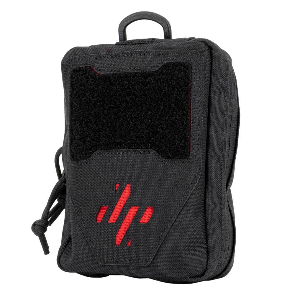 La borsa compatta di pronto soccorso è di buone dimensioni (piccola) per le cose più importanti. Può anche contenere a malapena un laccio emostatico CAT se il CAT è inserito obliquamente. Con un laccio emostatico CAT nella borsa, non c'è molto spazio per altro e consigliamo di rifornire la borsa con una benda rapida israeliana, disinfettante, forbici, cerotto, ecc. e di trasportare il laccio emostatico CAT separatamente.