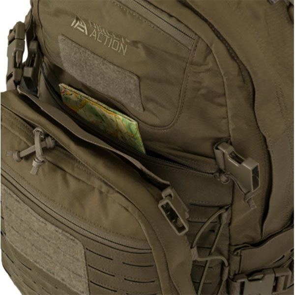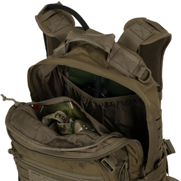 Lo zaino GHOST MKII di DIRECT ACTION GEAR è uno zaino da 30+ litri, scalabile e ben si adatta al ruolo di zaino tattico da 3 giorni. Ha uno scomparto principale con due scomparti con cerniera: il primo, più grande, ha una sacca di idratazione interna e uno scomparto in rete per gli accessori. Il secondo scomparto del GHOST MKII, accessibile dal retro dello zaino, è rinforzato e può contenere un laptop di grandi dimensioni. La terza tasca è una tasca organizer rimovibile che può essere completamente separata dal corpo principale dello zaino DIRECT ACTION GEAR. Normalmente si aggancia allo zaino principale con 4 fibbie e un cordoncino regolabile, ma può essere utilizzato anche da solo (ha una propria maniglia per il trasporto), ad es. B. per apparecchiature mediche. L'interno di questa borsa esterna è dotato di numerosi scomparti e tasche per organizzare la vostra attrezzatura. Quando è attaccato allo zaino principale GHOST MKII, forma una patta a coda di castoro dove puoi riporre indumenti aggiuntivi o attrezzature più leggere. Ci sono 4 tasche esterne - 2 tasche laterali che possono essere utilizzate per contenere bottiglie d'acqua. Inoltre, nella parte superiore dello zaino è presente una morbida tasca per occhiali con cerniera foderata in velluto e una tasca piatta con cerniera nella parte inferiore. Le cinghie di trasporto dello zaino GHOST MKII di DIRECT ACTION GEAR sono larghe e imbottite con schiuma rigida a cellule chiuse e dotate inoltre di fibbie laterali per una rimozione rapida. La cintura in vita è una cintura PALS/MOLLE completamente funzionale che può essere staccata dal corpo principale e utilizzata da sola con le bretelle a basso profilo incluse.