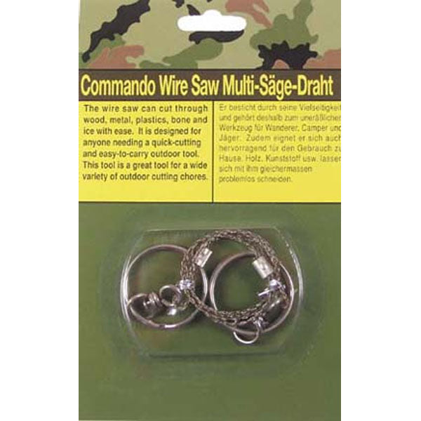 La sega a filo MFH Profi è costituita da un filo speciale avvolto a 8 spire in versione rinforzata. Per tirare si utilizzano i due anelli della maniglia. Con questa mini sega puoi tagliare legno, plastica, vetro, ossa e molti altri oggetti.