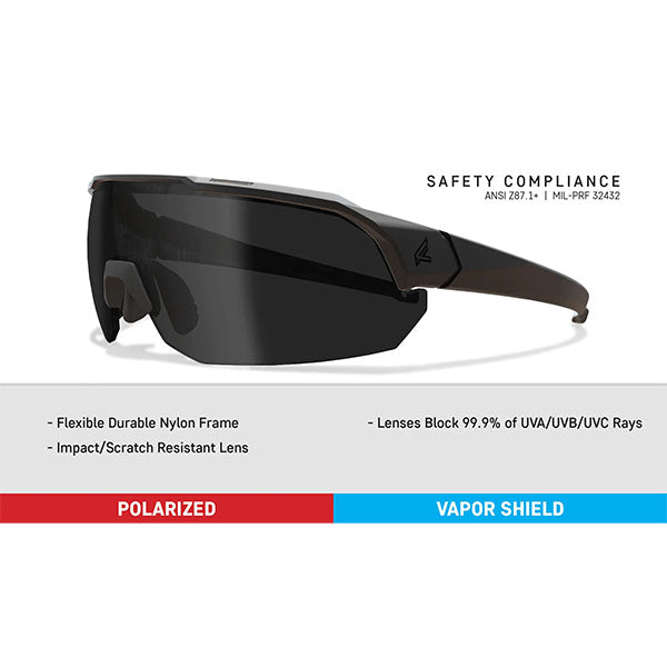 EDGE ha sviluppato una tecnologia antiappannamento permanente nel 1993 e l'ha chiamata Vapor Shield. A differenza di altri rivestimenti antiappannamento temporanei presenti sul mercato, viene incorporato nelle lenti durante il processo di produzione. Il risultato è una soluzione permanente per arrestare la formazione di nebbia causata dal vapore acqueo sulla superficie delle lenti.