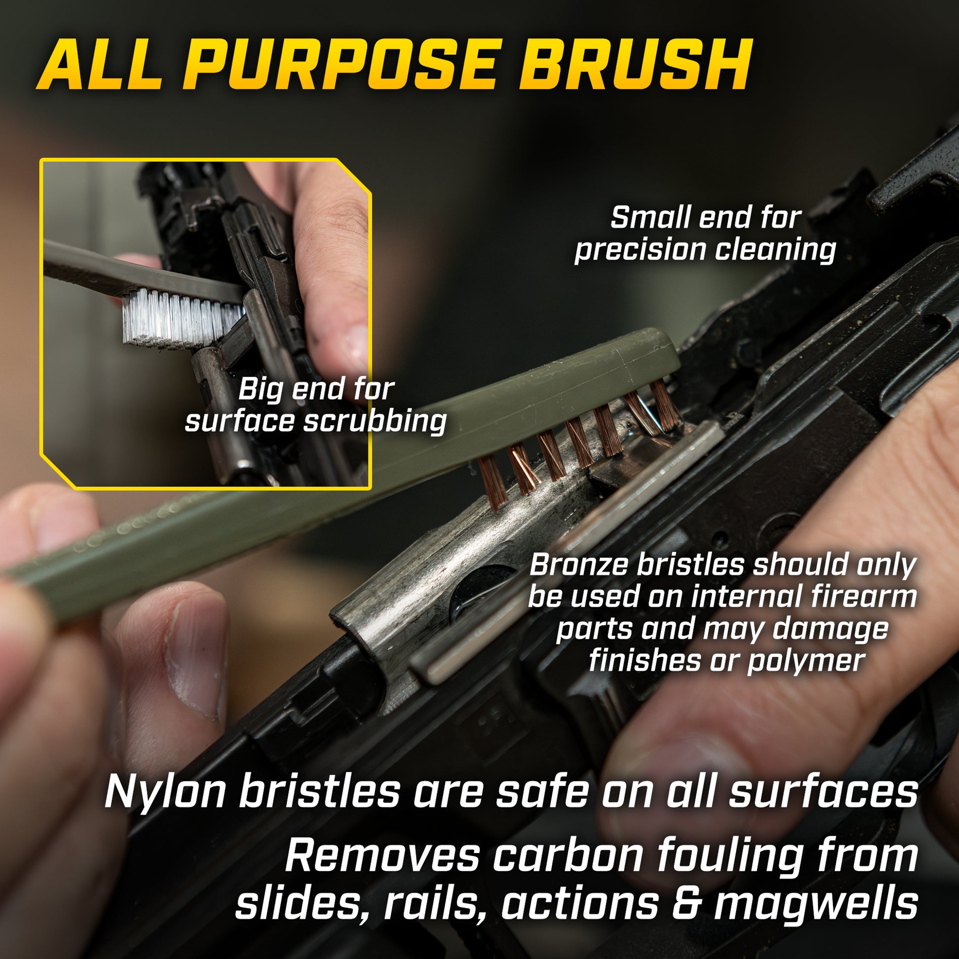 - Attrezzi specializzati: attrezzo per pistola 8 in 1, attrezzo per la rimozione del caricatore per Glock, passante per pistola, spazzole AP, raschietto