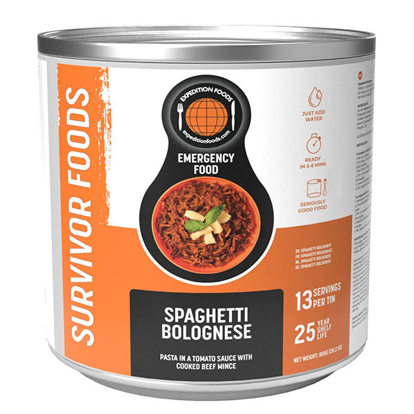 La gamma di lattine Survivor Foods di EXPEDITION FOODS è ideale per le emergenze e ti offre tranquillità grazie a pasti nutrienti, sani e gustosi. Che si tratti di calamità naturali (terremoti, uragani, tsunami), di interruzioni di corrente prolungate o di lunghi viaggi in montagna, nel deserto o ai tropici, sono leggeri, poco ingombranti e durano 25 anni. Essendo pasti liofilizzati, sono facili da preparare: usa tutta o parte della lattina, aggiungi acqua, lascia reidratare e in pochi minuti avrai pronto un pasto delizioso e nutriente per un massimo di 13 persone.
