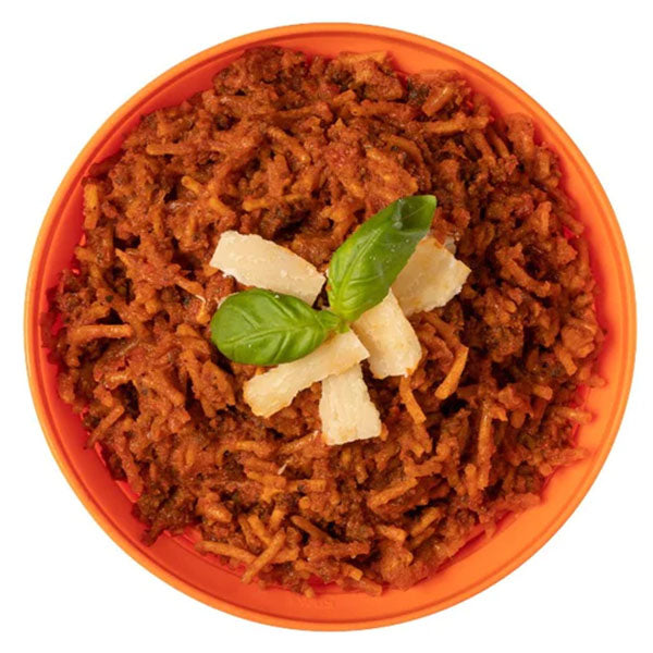 Il pasto per eccellenza che ti fa sentire bene: spaghetti alla bolognese di EXPEDITION FOODS. Spaghetti di grano conditi con una salsa ricca di pomodori, aglio, cipolle e carne macinata, arricchita con una miscela di erbe italiane come origano, salvia estiva, basilico, timo, rosmarino e maggiorana. Questa combinazione crea un delizioso piatto di pasta caldo, arricchito da una salsa bolognese deliziosamente ricca e cremosa, che esplode di sapore.