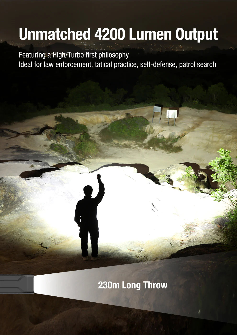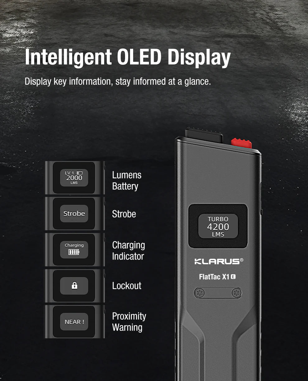 La FlatTac X1 di Klarus è stata sviluppata appositamente per polizia, esercito, forze di sicurezza e squadre di soccorso e stabilisce nuovi standard con 4200 lumen e luce stroboscopica tattica. Il potente LED Luminus SST-70 garantisce la massima luminosità, mentre lo stroboscopio ad alta intensità disorienta i nemici, per un controllo immediato in qualsiasi situazione tattica.