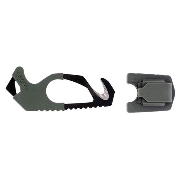 Il tagliacinghie Gerber taglia senza sforzo cinture di sicurezza o altre cinghie di nylon. Fissato all'attrezzatura e grazie al fissaggio capovolto, il tagliacinghie Gerber è subito a portata di mano quando necessario. La forma è progettata in modo che il tagliacinture possa essere utilizzato anche con i guanti. Realizzato da un unico pezzo di acciaio 420HC e rifinito con una finitura opaca. È inclusa una robusta guaina con clip.
