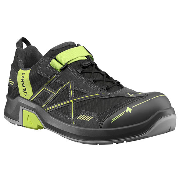 Il CONNEXIS SAFETY T S1P è un modello basso sportivo e leggero della collezione CONNEXIS. Questa scarpa non offre solo protezione, ma stabilisce anche standard completamente nuovi in termini di comfort. L'innovativa costruzione ortopedica della forma tiene conto delle esigenze naturali dei piedi. La scarpa è inoltre dotata del rivoluzionario sistema CONNEXIS. Un nastro speciale attraversa la scarpa. Con una sola trazione, la fascia del piede di chi lo indossa viene costantemente stimolata delicatamente, rallentando così l'affaticamento fisico.