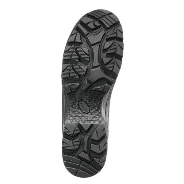 Suola in gomma/PU con comprovato battistrada strada/terreno, resistente all'abrasione e antiscivolo. Comportamento ottimale nella camminata e nel rotolamento grazie alla punta sportiva e alla svasatura del tallone. Resistente all'olio e alla benzina, antitraccia, ottimo isolamento dal freddo e dal caldo. Secondo la norma EN ISO 20347:2012.