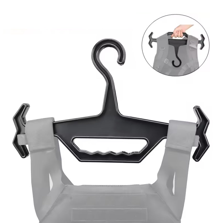 Grazie all'ingegnosa struttura laterale , il tuo gilet resta saldamente appeso alla gruccia: non scivola, non si piega e non si usura inutilmente. Particolarmente intelligente: la gruccia può essere girata e funge da maniglia ergonomica , perfetta per trasportare l'attrezzatura in modo rapido e comodo.