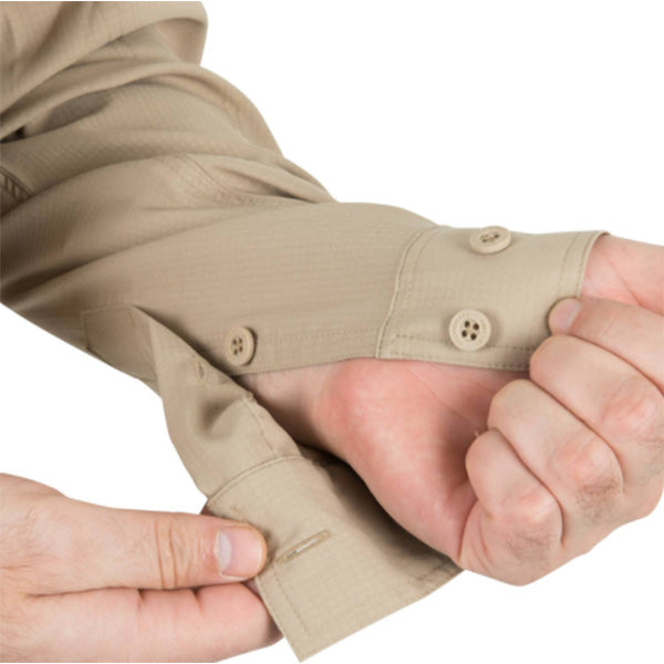 Il taglio anatomico della maglia è lo stesso delle classiche magliette DEFENDER MK2. Sul petto ci sono 2 tasche esterne verticali con patta in velcro e 2 tasche sul petto con cerniere YKK®.