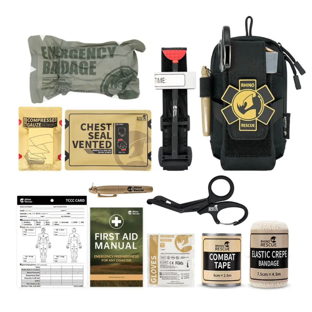 Grazie al sistema MOLLE/PALS, il marsupio Rhino Rescue IFAK può essere fissato in modo sicuro e saldo alla tua attrezzatura tattica. Particolarmente pratico: la tasca applicata è dotata di una patta che serve anche come ausilio per sollevarla, in modo che il contenuto sia sempre a portata di mano. Perfetto per chi è in viaggio, in servizio o durante le avventure all'aria aperta, il Rhino Rescue IFAK FANNY KIT è il compagno ideale per un primo soccorso rapido ed efficace.