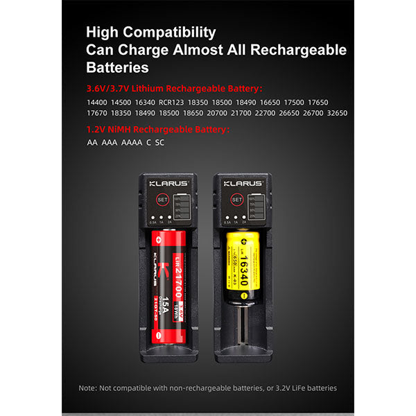 Una torcia elettrica funzionale funziona quando la batteria è completamente carica, senza dover attendere a lungo per la ricarica o correre rischi durante la stessa. Questo caricabatterie KLARUS soddisfa i più elevati standard e rappresenta quindi un vero e proprio punto di forza nell'uso professionale, consentendo di eliminare i rischi e di beneficiare dei vantaggi di una ricarica professionale e completa ovunque e in qualsiasi momento.
