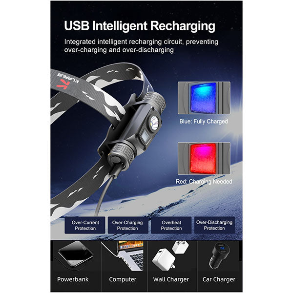 Fornitura: Klarus HL1, batteria 18650, archetto, cavo di ricarica, manuale operativo