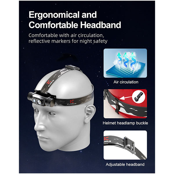 La Klarus HL1 è una lampada frontale all'avanguardia con tutti i fronzoli e pesa solo 54 grammi (senza batteria). Regola facilmente l'angolazione del fascio luminoso per concentrarti sugli ostacoli davanti a te o sul percorso accidentato sotto i tuoi piedi. A seconda dello sviluppo di calore, la lampada torna automaticamente al livello dopo un minuto nel funzionamento a 1.200 lumen. Ciò è necessario per proteggere il LED e i componenti interni e per garantire sicurezza e stabilità