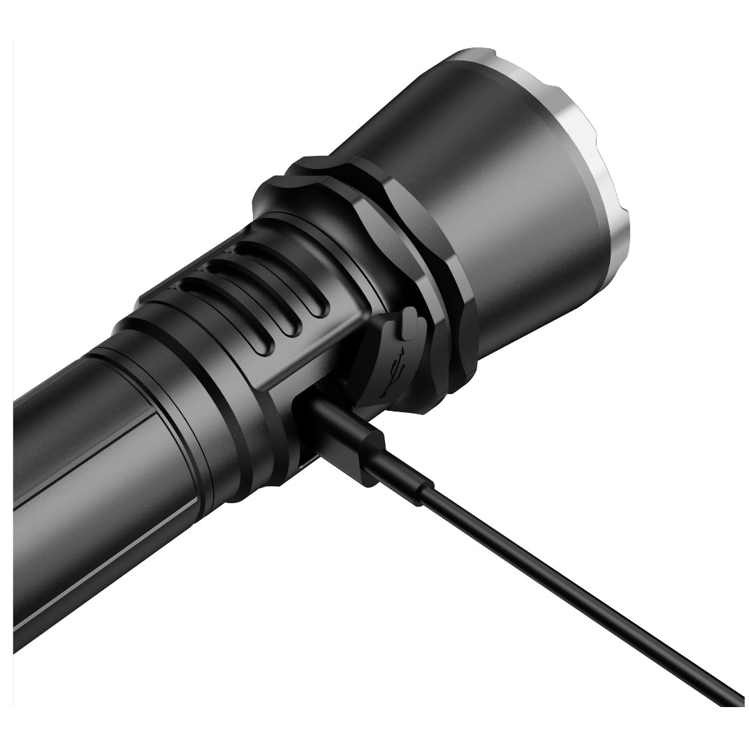 Der optimierte Reflektor ermöglicht eine Reichweite von bis zu 750 Metern — ideal für Outdoor-Abenteuer, Such- und Rettungseinsätze oder taktische Anwendungen.