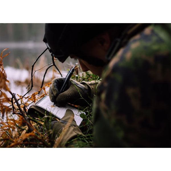 I quaderni impermeabili MODESTONE sono il risultato di molti anni di sviluppo del prodotto. L'idea dei taccuini impermeabili è nata quando l'inventore Kalle Kinnunen prestava servizio nelle forze armate finlandesi e i suoi appunti importanti della scuola per sottufficiali furono distrutti dall'acqua. La sfida più grande è stata trovare un materiale sostitutivo perfetto per la carta. Dopo approfondite ricerche e innumerevoli test, è stata finalmente sviluppata la carta di pietra MODESTONE. È resistente all'acqua e ai grassi, quasi indistruttibile e non viene mangiato dagli insetti. Allo stesso tempo, è una scelta rispettosa dell'ambiente poiché la carta MODESTONE è composta per l'80% da CaCo3 (carbonato di calcio) e per il 20% da HDPE (polietilene). La carta di pietra impermeabile MODESTONE ha un'altra caratteristica sorprendente: puoi persino scrivere i tuoi appunti su di essa con una chiave o qualsiasi altro oggetto appuntito.