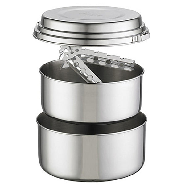Il set da 2 pentole Alpine è realizzato in acciaio inossidabile incredibilmente resistente in grado di resistere anche alle condizioni più difficili. È perfetto per un uso frequente da parte di chi è in movimento, ma anche di guide e gruppi organizzati, ovunque ci siano molti pasti da preparare in diverse avventure.