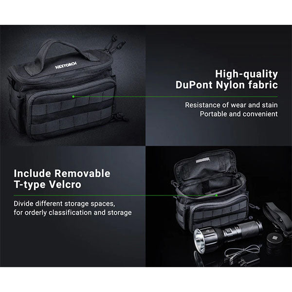 La lampada da ricerca SAINT TORCH 11 di NEXTORCH convince con una portata del fascio di 600 metri e 6 modalità di illuminazione. Le 4 potenti batterie, ciascuna da 2.600 mAh, garantiscono una durata fino a 110 ore e, grazie alla porta USB-C integrata, possono essere utilizzate anche come power bank, ad esempio. per smartphone. Quattro LED blu integrati lateralmente indicano il livello di carica attuale.