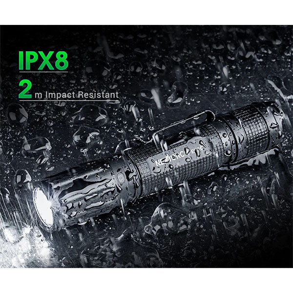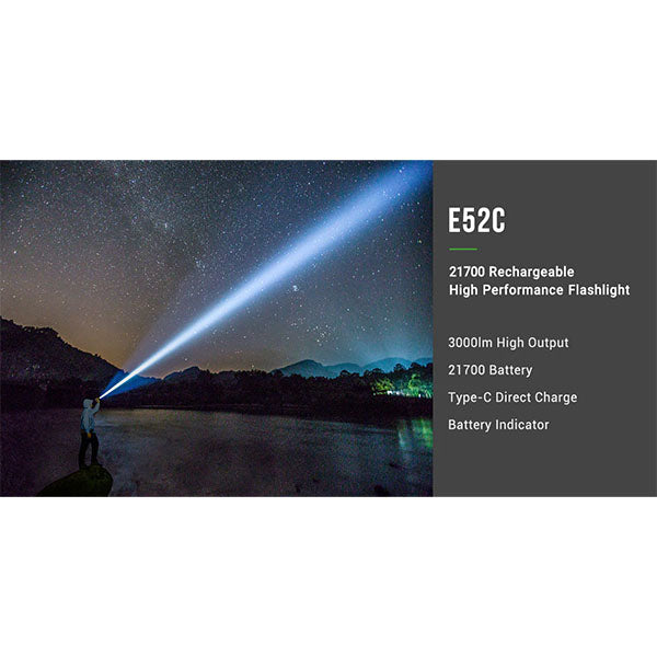 La E52C di NEXTORCH è stata sviluppata appositamente per lampade universali. Le prestazioni di 3.000 lumen sono davvero impressionanti, con una portata massima del fascio luminoso di ben 200 metri. La potente batteria agli ioni di litio 21700 da 4.800 mAh inclusa nella fornitura garantisce un'autonomia fino a 65 ore e una portata massima del fascio luminoso di 210 metri.
