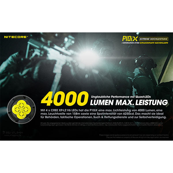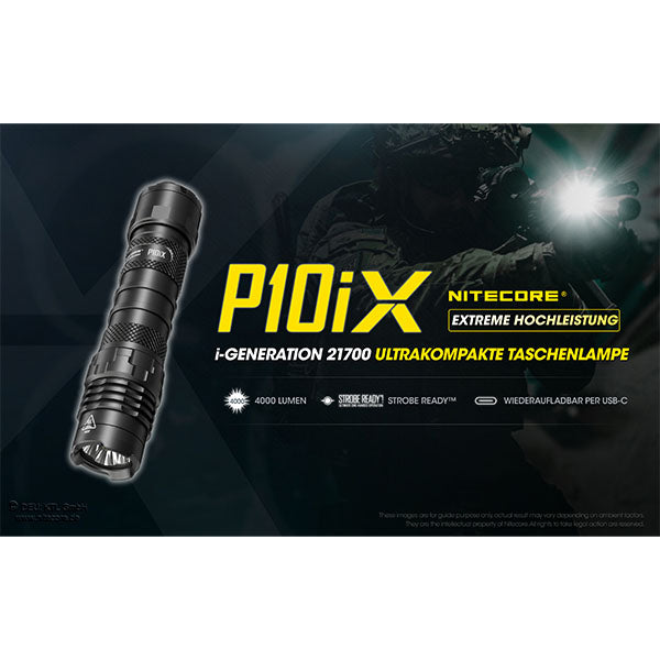 Torcia tattica a LED P10iX, 4.000 lumen, incl. batteria