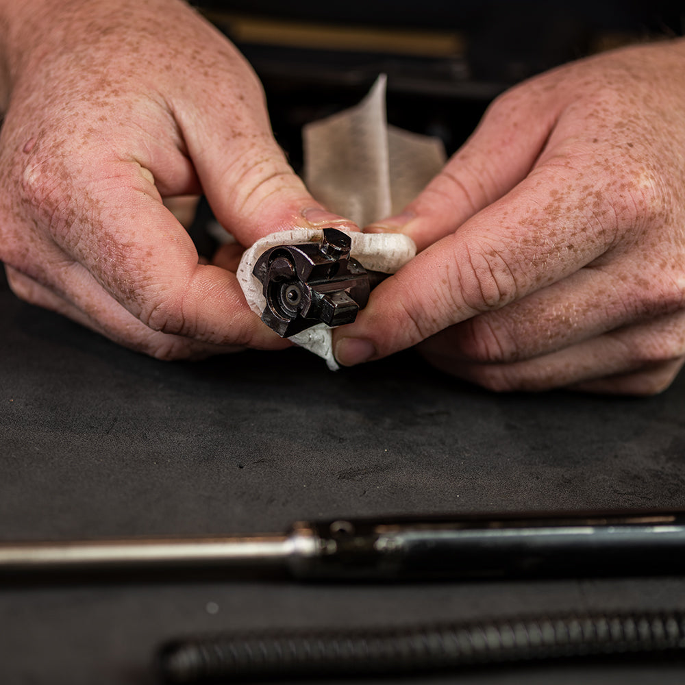Assicuratevi che l'arma sia scarica. Per istruzioni specifiche sulla cura, consultare il manuale dell'arma da fuoco.