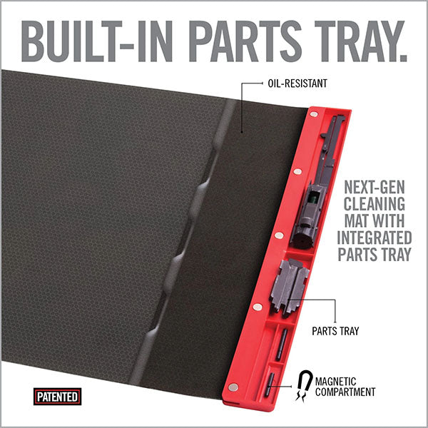 Il tappetino per pulizia SMART MAT – UNIVERSAL di REAL AVID è un tappetino per pulizia di nuova generazione con proprietà resistenti all'olio e ammortizzanti. Uno scomparto magnetico protegge i microcomponenti. Lo SMART MAT con dimensioni di 109 cm x 40 cm porta la pulizia delle armi a un livello superiore.