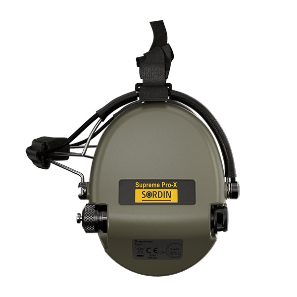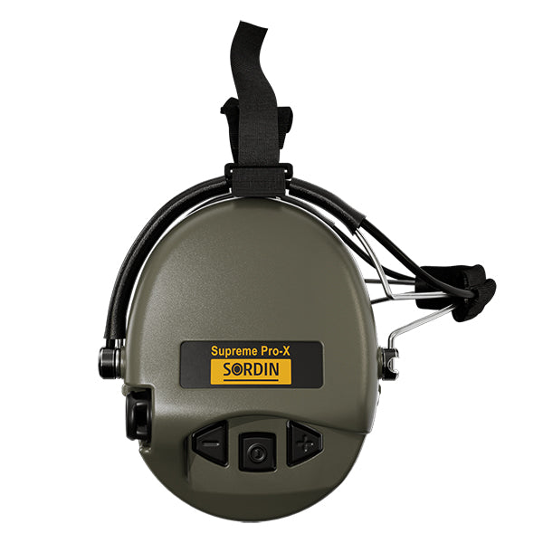 La protezione acustica SUPREME PRO-X di SORDIN combina una protezione ottimale con un'elevata amplificazione, ingresso AUX e vano batteria impermeabile. È disponibile con ciotole verdi o nere. La protezione acustica SUPREME PRO-X è dotata di serie di un comodo cuscino in schiuma di PVC.
