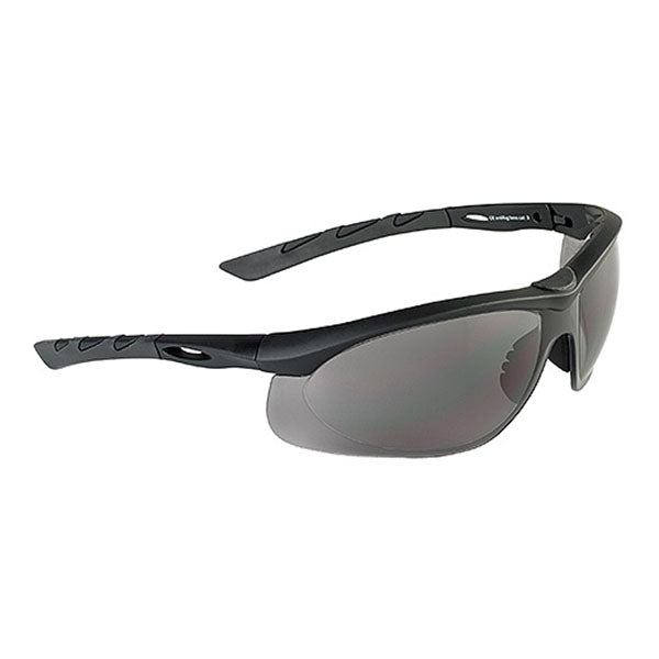 Occhiali di sicurezza di alta qualità di Swiss Eye nella versione Lancer con stanghette nere. Gli occhiali hanno stanghette flessibili e gommate. Le lenti sono realizzate in policarbonato infrangibile e sono dotate di un rivestimento antigraffio e antiappannamento. Le lenti offrono inoltre una protezione del 100% dai raggi UVA, UVB e UVC fino a 400 nm (nanometri). Gli occhiali vengono consegnati in una custodia in microfibra, adatta anche per la pulizia delle lenti. La gamma di prodotti Tactical offre una protezione oculare di alta qualità per le sfide speciali. Ciò include l'uso negli sport di tiro , nella caccia , nell'uso ufficiale , ecc. Per anni, il modello Swiss Eye Raptor è stato indossato da varie unità speciali della polizia e dai membri delle forze armate tedesche.