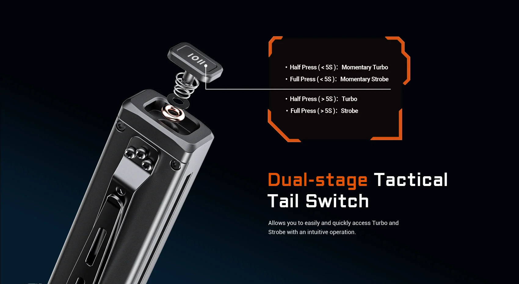 ✅ Doppio interruttore tattico per un rapido accesso a Turbo e Strobo