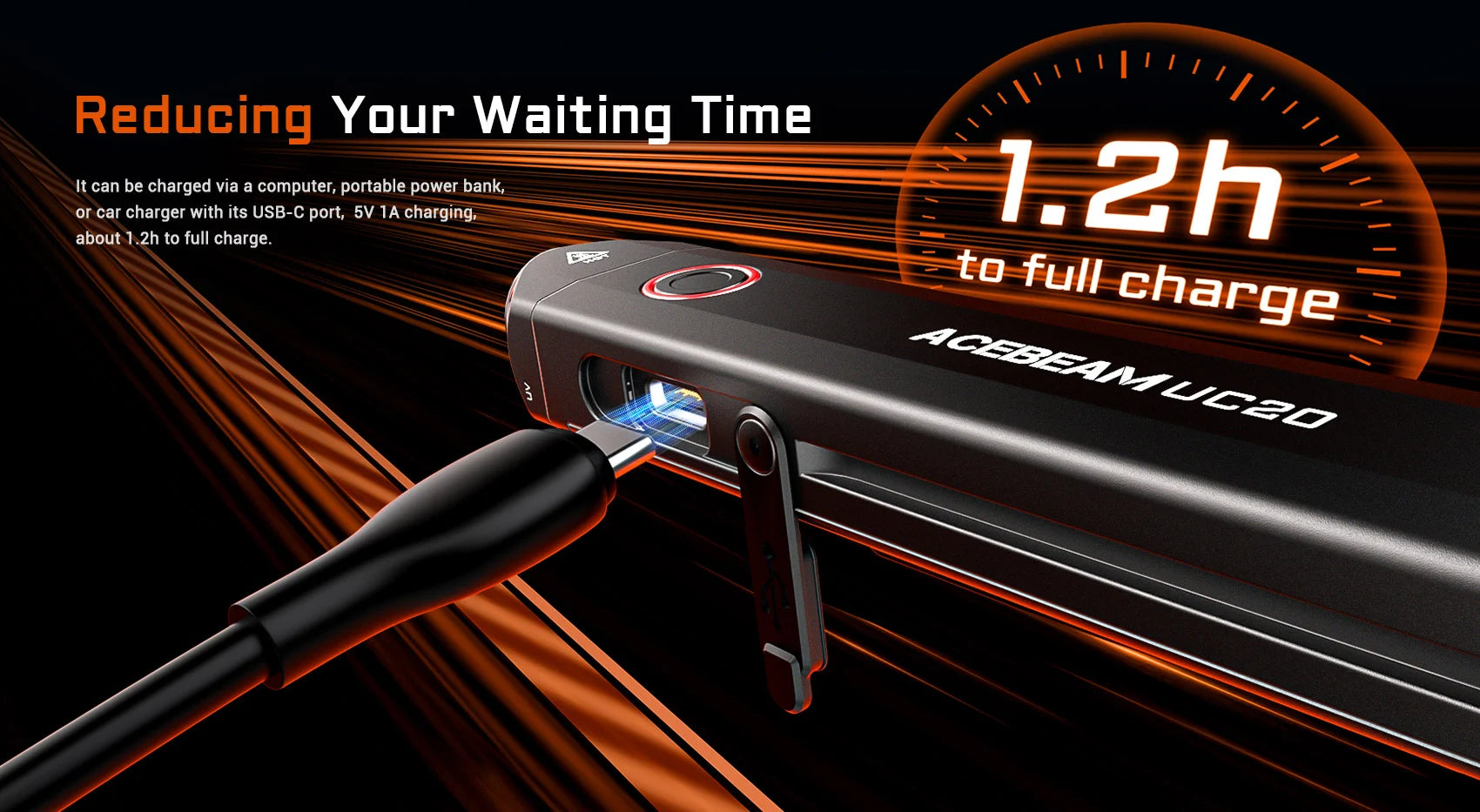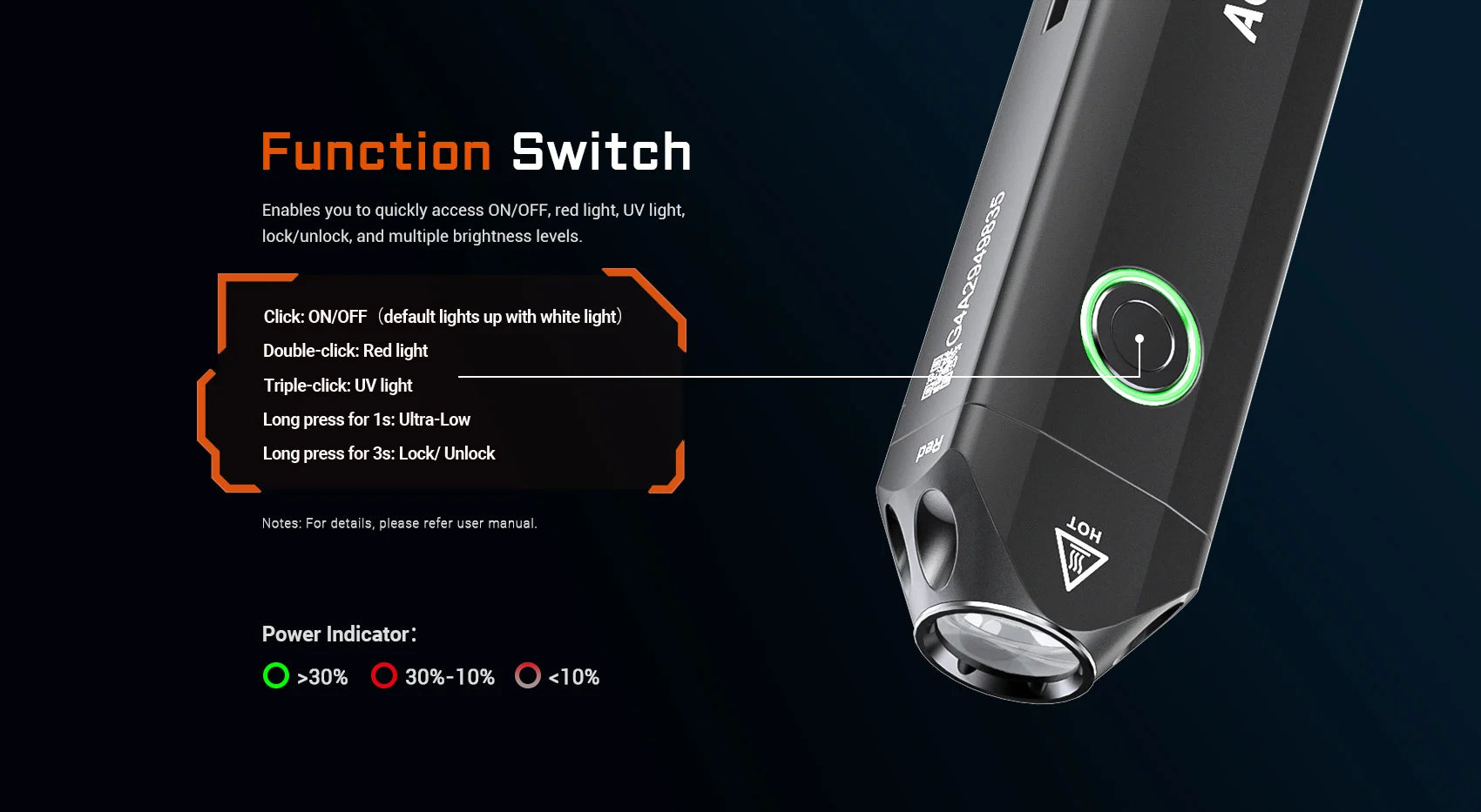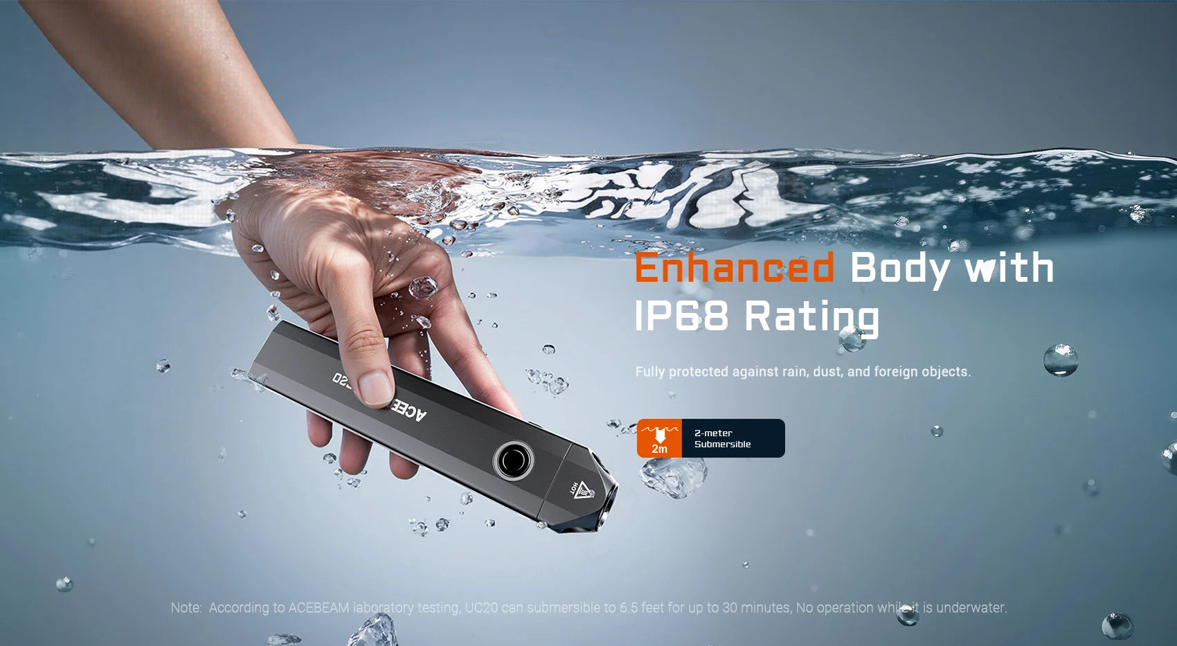 Grazie al doppio interruttore tattico all'estremità della lampada, avrai accesso immediato alla modalità turbo o strobo. Grazie alla batteria USB-C a ricarica rapida integrata (1.000 mAh), la ricarica completa avviene in sole 1,2 ore ed è pronta per un'illuminazione fino a 63 ore. La struttura in alluminio fresato CNC, la protezione IP68 e la resistenza alle cadute da 1,5 metri rendono l'UC20 un compagno robusto in ogni situazione: ultrasottile, leggero e con pratico attacco a clip.