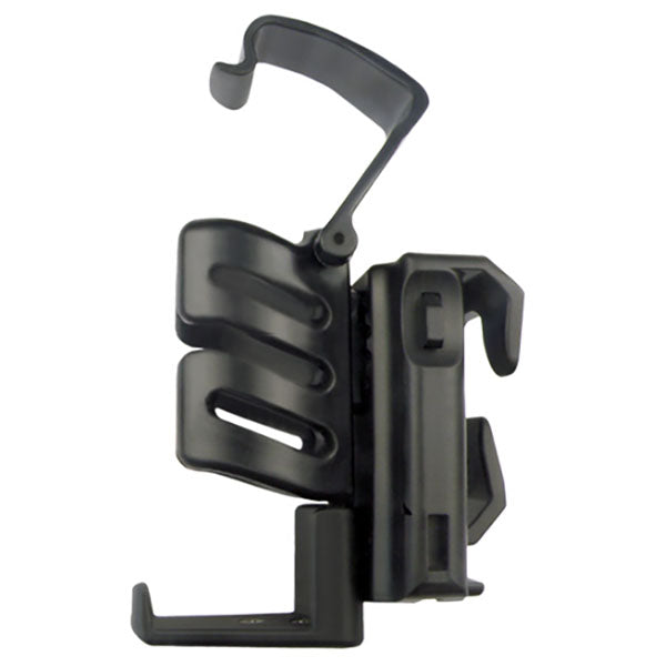 Das ESP-Universalholster ist mit der speziellen, patentierten UBC-01 Fixierschnalle ausgestattet, die eine schnelle Befestigung am Gürtel mit nur einer Hand ermöglicht, ohne dass der Gürtel abgenommen werden muss. Das Holster kann am Gürtel um 360 Grad gedreht und in 16 verschiedenen Neigungspositionen arretiert werden.