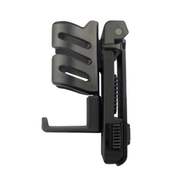 Das ESP-Universalholster ist mit einer UBC-02 Fixierschnalle ausgestattet, die eine schnelle Befestigung am Gürtel mit nur einer Hand ermöglicht, ohne dass der Gürtel abgenommen werden muss. Das Holster kann am Gürtel um 360 Grad gedreht und in 16 verschiedenen Neigungspositionen arretiert werden. Der Pfefferspray-Halter ist zudem MOLLE-kompatibel.