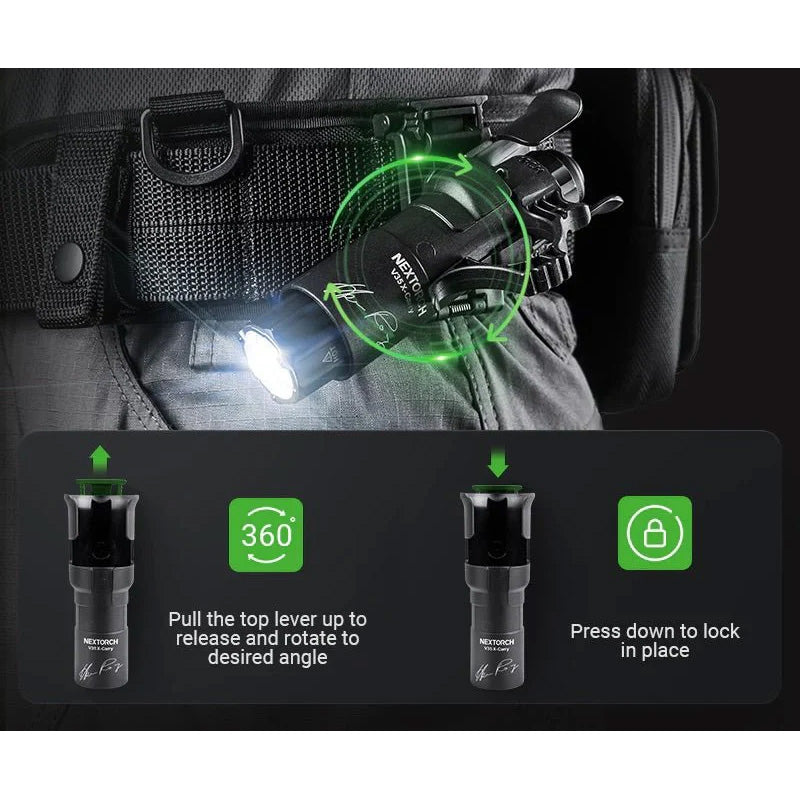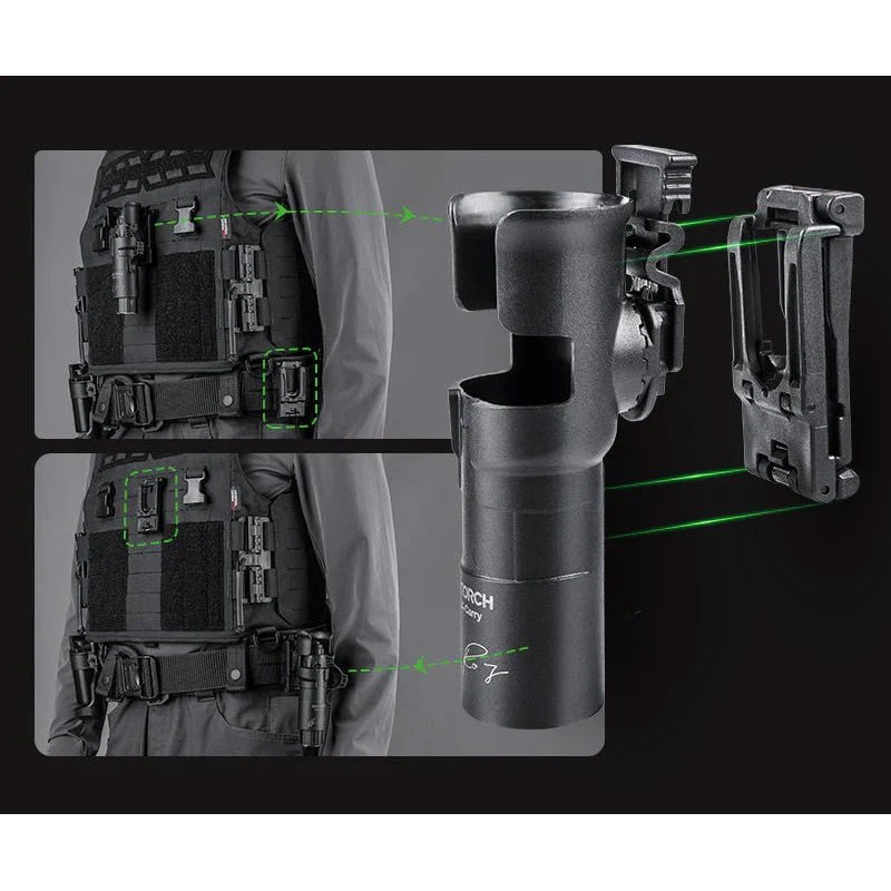 Das V35 Quick-Draw Holster von Nextorch ist die neueste Generation des bewährten NQD-Systems (Next Quick Draw) und liefert dir blitzschnelle Entnahme, schlankes Design und echte 360°-Verstellung. Für den Streifendienst entwickelt, bietet es eine verbesserte Gürtelanpassung (38–50 mm), nahtlose Wechsel zwischen Dienstgürtel und MOLLE sowie einen Boden-Lichtport für freihändige Beleuchtung, während die Lampe sicher im Holster bleibt. Das V35 ist kompatibel mit NEXTORCH TA30C / TA20 mit FR-1 Ring