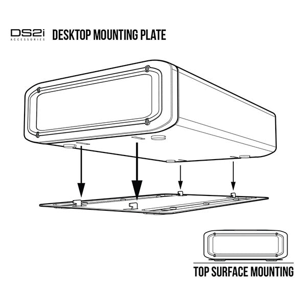 Grazie alla piastra di montaggio da tavolo, puoi montare in modo semplice e sicuro il tuo VAULTEK DS2i su qualsiasi comodino, tavolo, scaffale o altra superficie orizzontale.