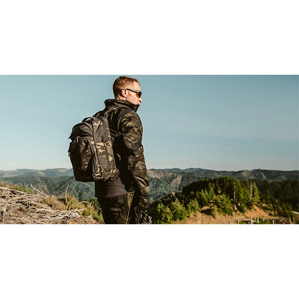 Per le operazioni a bassa visibilità, il PERIMETER 25 di VIKTOS è dotato di una fondina universale CCW in cui possono essere trasportate pistole da compatte a full-size. Le tasche tattiche interne sono perfette per accessori EDC e caricatori per pistola/fucile. Altre caratteristiche includono uno scomparto imbottito per laptop e tasche per accessori per caricabatterie, penne e taccuini. All'esterno, lo zaino è dotato di pannelli Molle tagliati al laser, uno scomparto espandibile per la bottiglia d'acqua, uno scomparto per la sacca di idratazione e spallacci e spallacci adatti allo zaino fissati con hardware Mil-Spec Duraflex®.