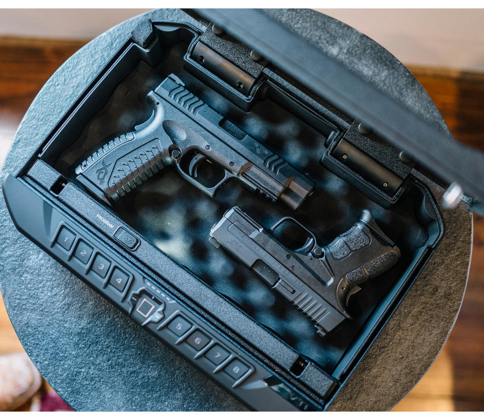 La cassaforte VTI della serie VT di Vaultek offre una protezione avanzata contro i furti con caratteristiche quali barre anti-scasso, doppie serrature anti-impatto, cerniere interne e l'esclusivo nuovo sistema di rilevamento degli impatti, che garantisce la massima protezione contro i furti.