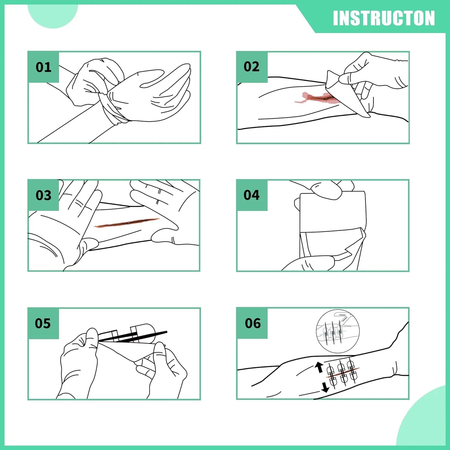 - 6 strisce avanzate per la sutura delle ferite : per una cura sicura ed efficace delle lacerazioni senza bisogno di punti di sutura.