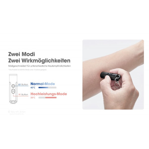 ✅ Sofortige Linderung: Spürbare Erleichterung bei Insektenstichen dank gezielter Wärmebehandlung in zwei Stufen – ca. 45 °C (Normal) oder ca. 50 °C (High).