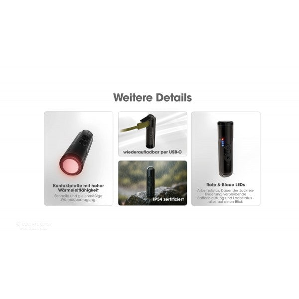 ✅ Kompakt & wiederaufladbar: Nur 12 g leicht und per USB-C schnell aufladbar. Passt in jede Tasche oder an den Schlüsselbund.
