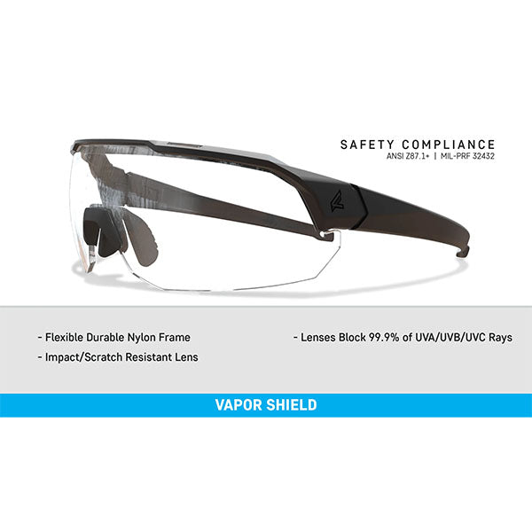 EDGE hat im Jahr 1993 eine dauerhafte Anti-Beschlag-Technologie entwickelt und sie Vapor Shield genannt. Im Gegensatz zu anderen vorübergehenden beschlagfreien Beschichtungen auf dem Markt wird sie während des Herstellungsprozesses in die Gläser eingearbeitet. Das Ergebnis ist eine dauerhafte Lösung, um die Bildung von durch Wasserdampf verursachten Beschlägen auf der Oberfläche der Gläser zu stoppen.
