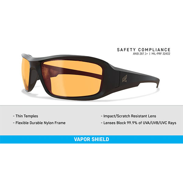 Die Tiger's Eye-Gläser filtern niedrige Blaulichtpegel heraus und mindern so die Belastung für die Augen. Die bernsteinfarbene Gläser verbessern die Tiefenwahrnehmung, den Kontrast und die Farbdefinition. Die Tiger Eye Gläser wurden von EDGE entwickelt und garantieren auch unter erschwerten Bedingungen klare Sicht und präzise Optik.