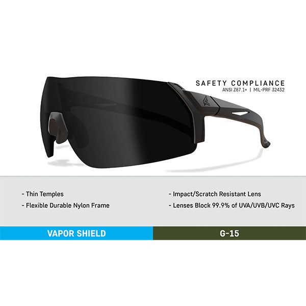 Alle EDGE Gläser bestehen aus splitterfestem Polycarbonat. Dieses Material ist leicht, blockiert 99,9% der UV-Strahlung und schützt dank seiner natürlichen Festigkeit vor Geschossen oder stumpfen Kräften. EDGE Gläser werden immer unter Berücksichtigung der strengen Sicherheitsstandards von ANSI oder den anspruchsvollen militärischen Anforderungen von MCEPS entwickelt, um dir bestmögliche Sicherheit zu garantieren.