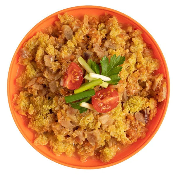 Ein zauberhaftes Frühstück von EXPEDITION FOODS - Rührei mit Käse & karamellisierten Zwiebeln. Dieses Gericht steht ganz oben auf der Liste der herzhaften Frühstücke mit exquisitem Rührei, gemischt mit Cheddar-Käse und karamellisierten roten Zwiebeln. Es kann jederzeit als All-Day Breakfast gegessen werden und ist eine unverzichtbare Mahlzeit beim Outdoor-Aktivitäten, Trekking oder längeren Arbeitseinsätzen.