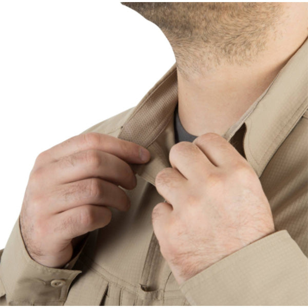 Der anatomische Schnitt des Hemdes ist derselbe wie bei den klassischen DEFENDER MK2 Hemden. Auf der Brust befinden sich 2 vertikale Aussentaschen mit Klettverschlussklappen sowie 2 Brusttaschen mit YKK®-Reissverschlüssen.
