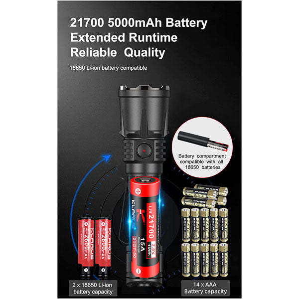 Die Klarus XT21X PRO ist eine weitere geniale Ergänzung der XT-Taschenlampenreihe. Sie ist die hellste dieser taktischen LED Taschenlampen. Mit einer CREE XHP70.2 P2 LED ausgestattet kann diese Leuchte eine Leistung von bis zu 4'400 Lumen erreichen! Das ist ein Lichtniveau, das bei Suchscheinwerfern üblich ist. Die XT21X ist eine gute Wahl für Such- und Rettungseinsätze in schwer zugänglichen Gegenden. Die XT21X PRO verfügt auch über das markante Design des Doppelheckschalters der XT-Serie, mit dem es einfach ist, die Modi mit einer Hand ein- und auszuschalten.
