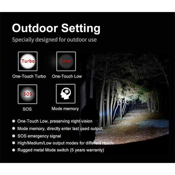 GARANTIE: 5 Jahre (Funktionsgarantie auf die Taschenlampe exkl. Akku)