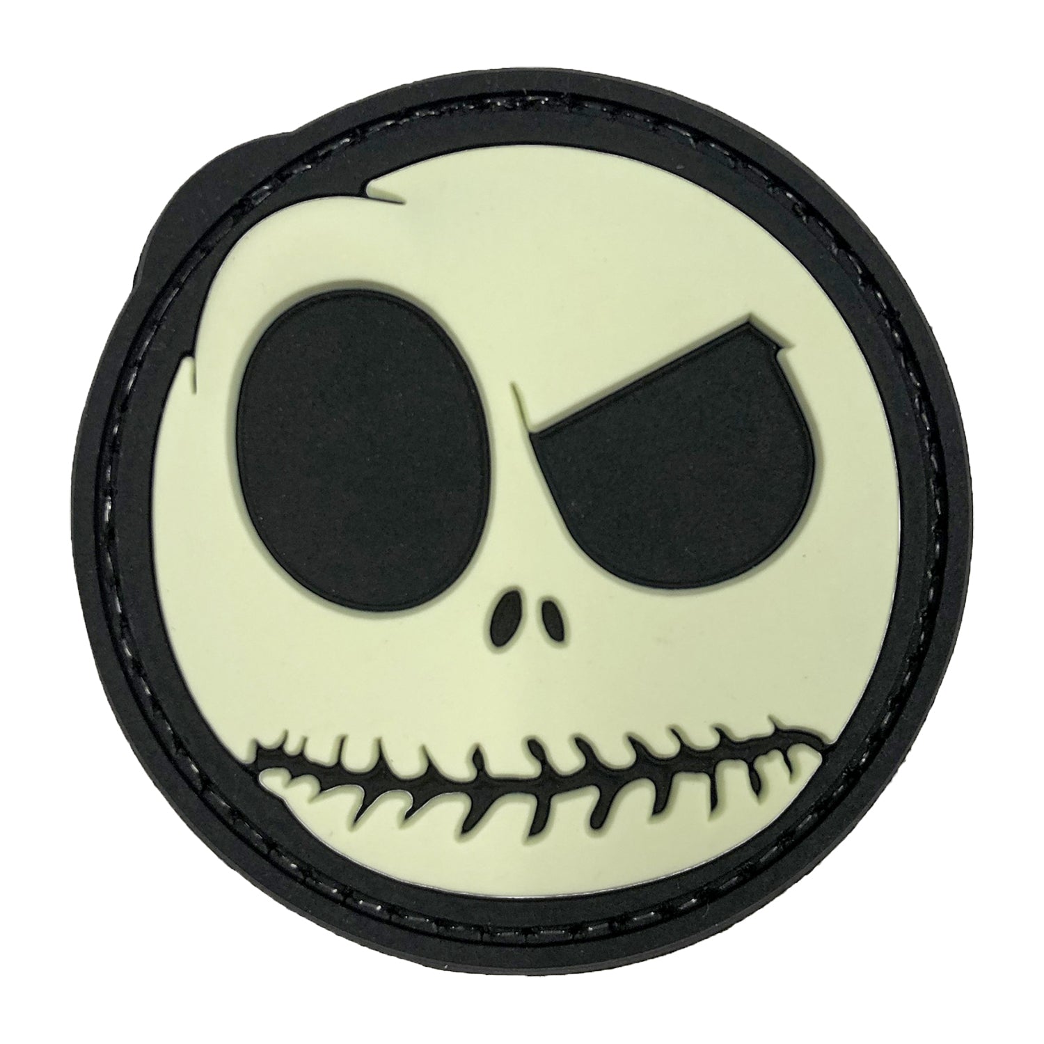 3D-PVC-Klettabzeichen „SCEPTICAL SKULL“ – Furchtloser Totenkopf, leuchtend im Dunkeln